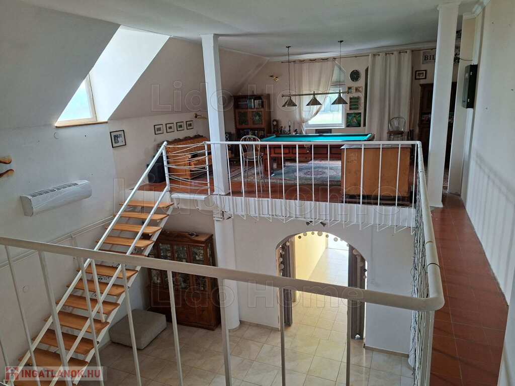 - tetőtér: nappali, hálószoba, konyha, fürdőszoba (befejezésre vár), külön WC, 2 hálószoba, 2 fürdőszoba zuhanyzóval és WC-vel, kamra, galéria, gardrób szoba, az utcafronton exkluzív berendezésű billiárd szalon