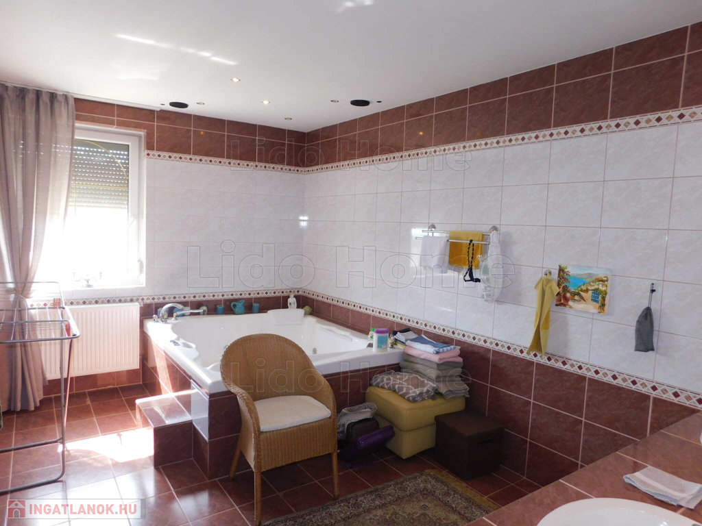 - szuterén helyiségei: dupla garázs, műhely, háztartási helyiség, medence gépészeti helyisége, szoba, fürdőszoba, zuhanyzó és WC